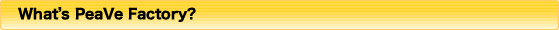 資本主義社会が地球を征服し 経済的豊かさを求め続けてきた20世紀の終わりに 「愛と平和」というグラウンドテーマのもと さまざまな必需品(文化)を生産するための工場(集団)として われわれ、PeaVe Factory (ピーブファクトリー)は誕生しました。
